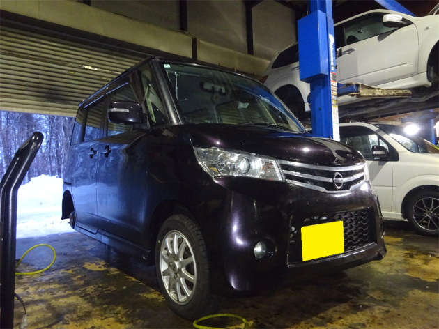 日産 ルークス ML21S K6A パンク走行不能 搬送して入庫しました (;^ω^)