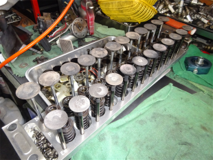 日産 スカイライン GTR BNR32 EB26DET エンジンが降ろされ... エンジン 分解 ヘッド バルブ&スプリング 分解 洗浄 洗浄した ヘッド と シリンダーブロック が HKS 鍛造ピ