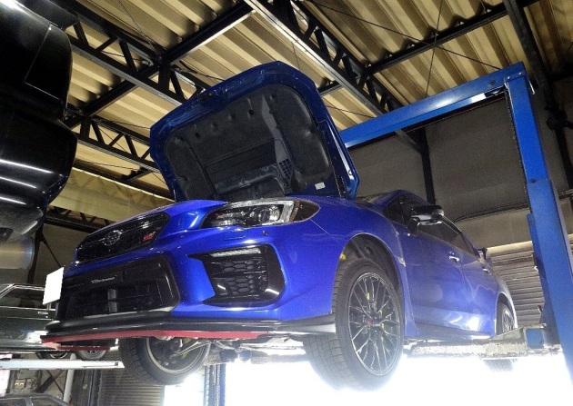 スバル WRX STI VAB EJ20 オイル交換 入庫しました (^^) エンジン A.S.H FSE-R 10W40 交換 SOD-1 200㏄ 添加しました! WRX STI 春 入庫日 予