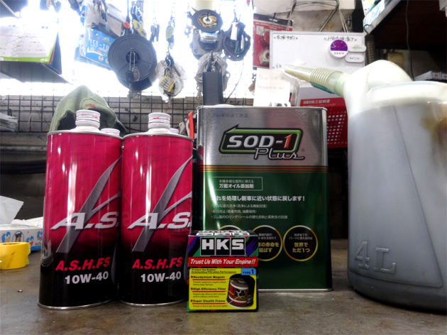 スバル WRX STI VAG EJ20 オイル交換 入庫しました (^^) エンジン A.S.H FS 10W40 と... HKS オイルエレメント 交換 SOD-1 300㏄ 添加しました (