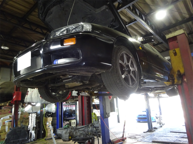 日産 スカイライン ENR34 RB25DET ATミッション交換 リフトに上げましたが...