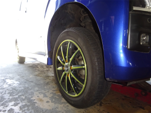 日産 ルークス B21A 3B20 スタッドタイヤ交換 入庫しました (^.^) タイヤ1本 パンク 修理して装着です! クギ が刺さってました 珍しい (;^^)ヘ.. エンジン A.S.H マル