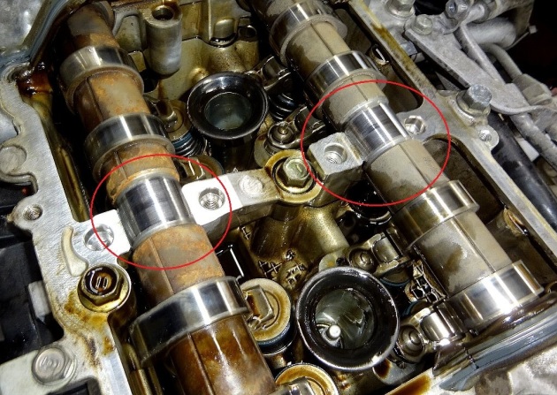 カムシャフトも傷だらけ と...(*´ω`)