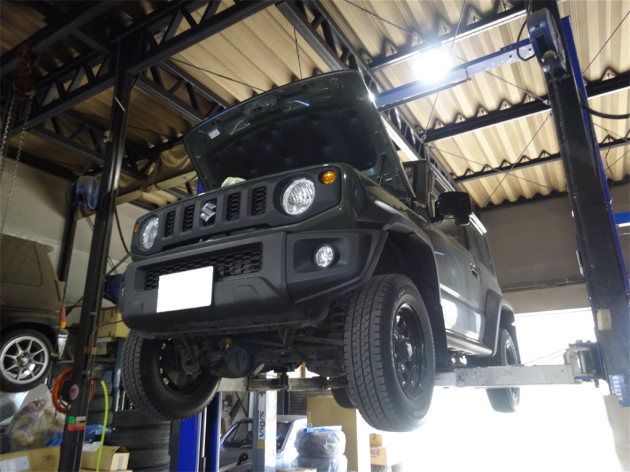スズキ ジムニーシエラ JB74W K15B【段差で車がふらつく】と入庫しました (^.^) フロント ステアリングロッド等 分解 取付し直しました! エンジン Greddy プラチナム 5W30