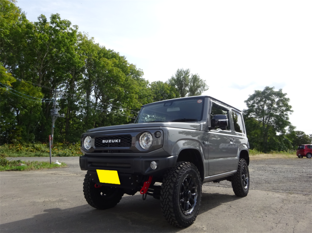 スズキ ジムニーシエラ JB74W K15B 新車お披露目で来店しました (^。^) H6年6月登録車 走行距離 2,750㎞ 暫くは当社での作業はないのかな? EKワゴンから乗換なので かなり大き