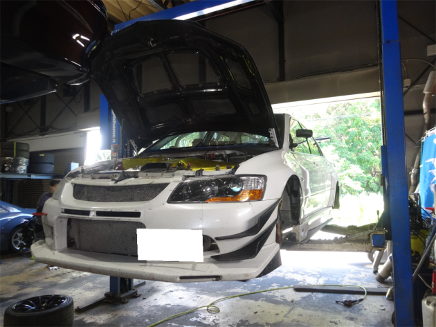 三菱 ランサーエボリューションⅨ CT9A 4G63 入庫 (^。^) 5月製作予定が...5ヶ月 永らくお待たせ致しました。 やっと オリジナルマフラー製作 始まりです! それも チタンマフラー