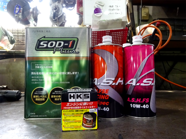 エンジン A.S.H ESE-R+FS 10W40 オイルエレメント 交換 SOD-1 添加