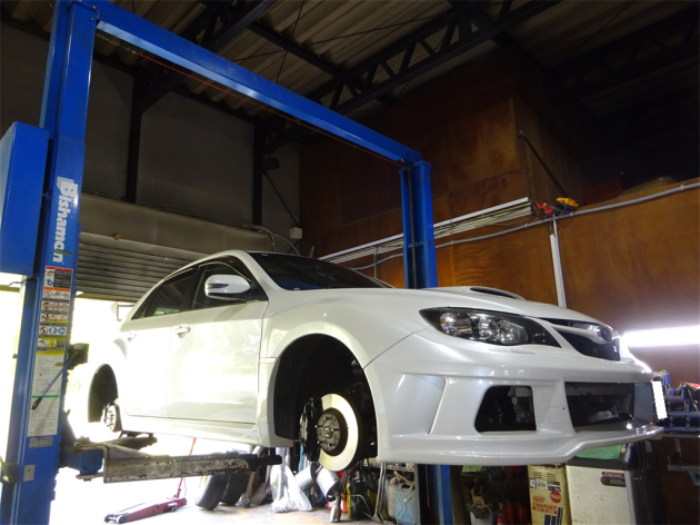 車検・整備 終了した スバル インプレッサ WRX GVB EJ20 の... BLITZ エアロスピード フロントバンパー DAMD リヤバンパー 塗装 取付 完成! ナンバープレート ステー製作