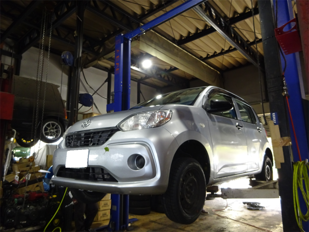 トヨタ パッソ M710A 1KR 朝一 スタッドレスタイヤ交換 入庫です!
