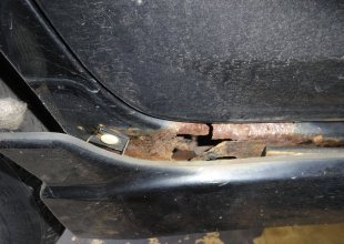 右 リヤドア下 錆びで穴は アルミテープで修正 塗装 修正 (ーー;)