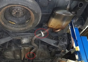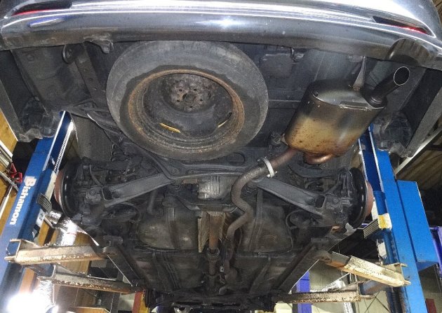 中古マフラー フランジ溶接とセンターマフラーが折れて急遽 溶接 取付となりました (ーー;)