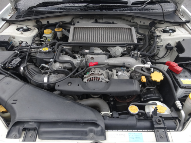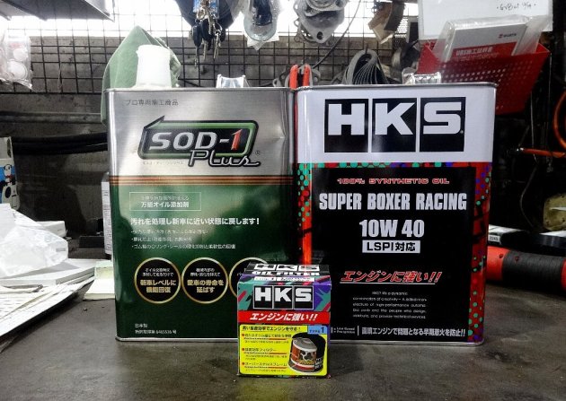 スバル インプレッサワゴン STI GGB EJ20 朝一入庫しました (^_^) エンジン HKS BOXER 10W40 HKS オイルエレメント 交換 SOD-1 添加しました (^^)v イ