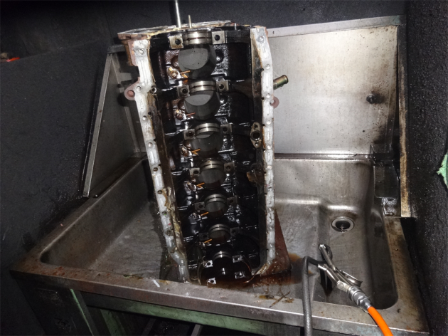 ブロック 洗浄 加工に出します...それにしても内部 真っ黒ですね!