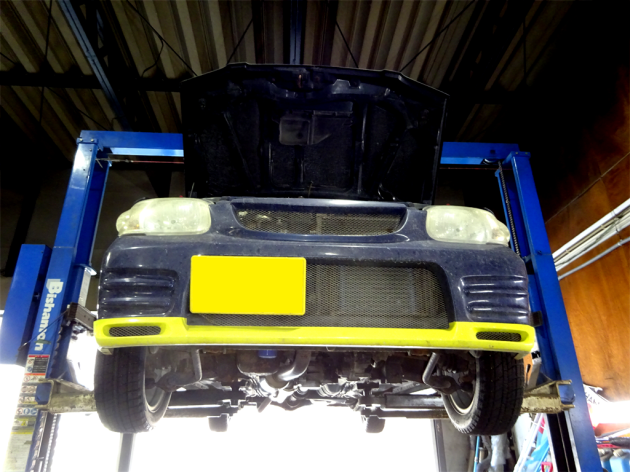 排気漏れ修理した スズキ アルトエポ改ワークス HA23S K6A 帰宅途中に... オイル交換していないことに気付き 急遽Uターン 再来店です (;^ω^) ロイヤルパープル HPS 5W30 オ