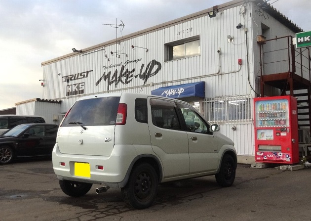 スズキ Kei HN12S F6A タイヤ&オイル交換 入庫しました (^_^) ヨコハマ IG70 165/70R14 2本購入 入替 装着と... エンジン HKS プレミアム 5W30 交換