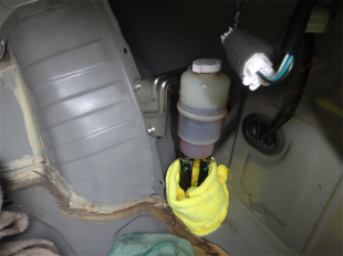 オイルクーラーホースとドラシャブーツ オイル滲み 洗浄 近々交換ですね σ(^◇^;)