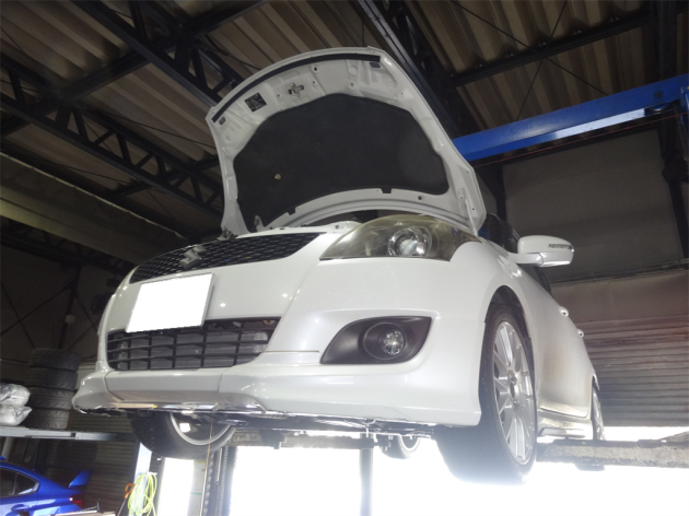 スズキ スイフトスポーツ ZC33S K14C 入庫しました (^_^) リフトに上げ フロントバンパー 取り外し... 40th フェアーでお買い上げの Greddy インタークーラーキット 取付