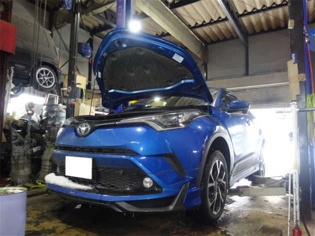 大雪(積雪40㎝以上)で 朝から除雪に追われる中 オイル交換 2台 入庫に (^◇^;) トヨタ C-HR NGX50 8NR 10時過ぎに 来店! エンジン HKS プレミアム 0W20 交換 S