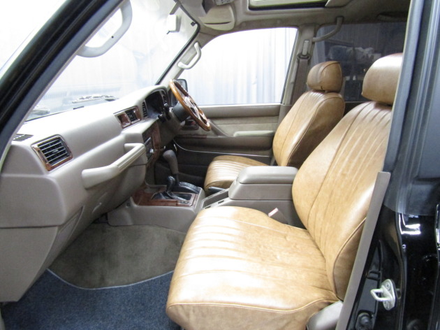 ランクル80後期ディーゼルターボ!全塗装ブラック角目4灯!ブラウン内装!走行26.9万K! 2025年9月8日 平成8年車ランクル80VX-LTD 後期走行距離 269,000キロ車検整備付4200cc4WD FAT新角目4灯新後期グリル新ヨコハマジオランダーMTタイヤ新ポリッシュ10Jホイール新マークルオリジナル製作シートカバーウッドパネルサンルーフ 後期ディーゼルターボ 本州仕入1ナンバーSOLDOUT!!
