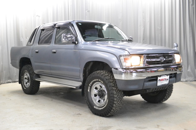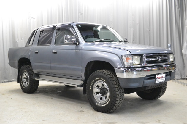 H10ハイラックススポーツピックアップ!4WDダブルキャブ!本州仕入走行11.7万キロ! 2025年12月10日 平成10年車トヨタ ハイラックスピックアップ ダブルキャブ 4WD走行距離 116,800キロ車検 令和8年8月2400ccFATディーゼルターボ オートマ 荷台ラプター塗装 メッキホイール 新グッドリッチATタイヤ メッキバンパー エアバッグ ETC タイベル済 本州仕入 4ナンバー車両本体価格278万円 諸費用7万円 総額285万円!!