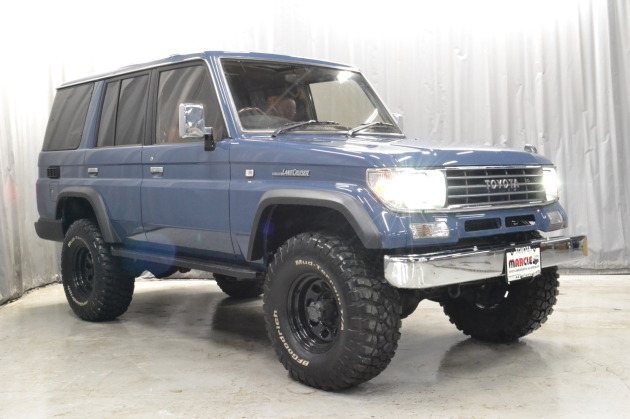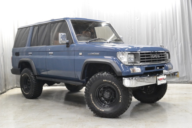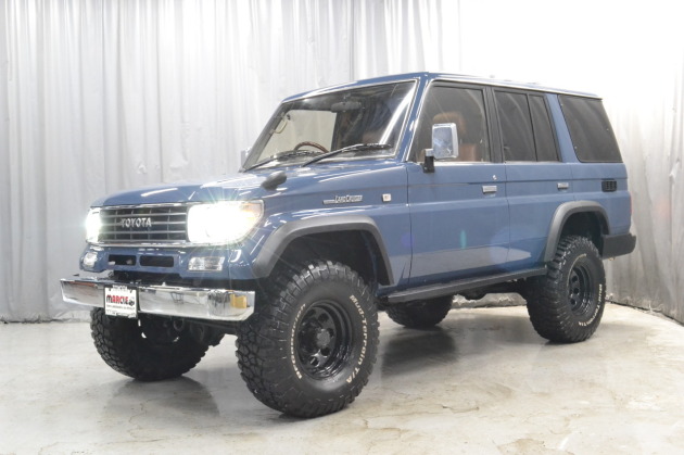 78プラド全塗装アルルブルー!リフトアップサンルーフ付き!走行18.9万キロ! 2026年3月11日 平成6年車ランドクルーザー78プラド SXワイド走行距離 188,600キロ車検整備付3000ccFATディーゼルターボサンルーフ全塗装アルルブルー オートマグッドリッチMTタイヤ シートカバー ウッドハンドル 地デジナビ ETC リアヒーター 寒冷地仕様 タイベル交換済 1ナンバー 本州仕入車両本体価格328万円 諸費用10万円 総額338万円!!