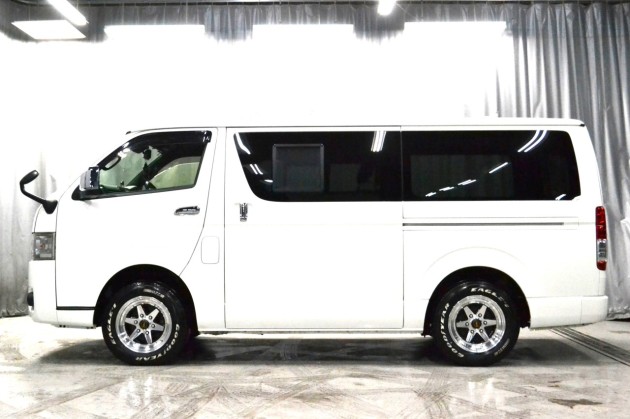 ハイエース ダークプライムⅡパールホワイト!ディーゼルターボ4WD!純正ナビ!ヴァローネAW!ホワイトレタータイヤ!