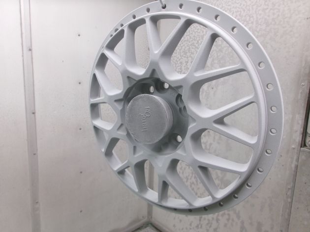 インナーリムはオリジナルと同じくシルバーにするので、シルバーをパウダーコートします。