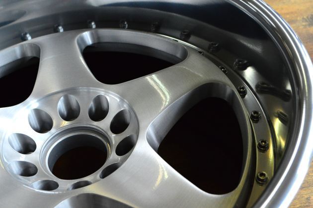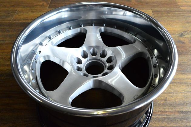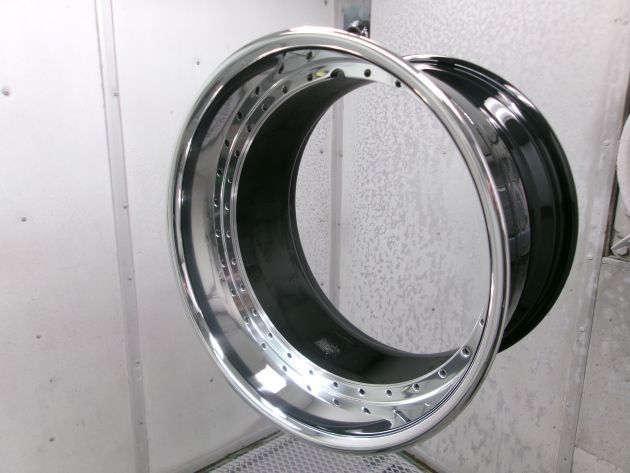 古いホイールなので、ブラッシュドでカスタムリメイクと、アウターリム交換でサイズ変更ご希望で東京都よりご依頼いただきました。