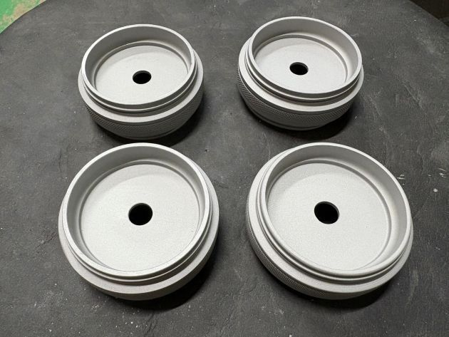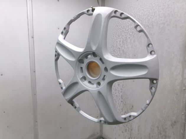 センターキャップは元々は切削ですが、メッキご希望でしたのでブラスト後に蒸着メッキ加工をしました。