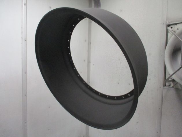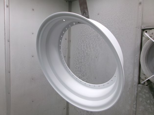 元の塗装を剥離、ブラスト処理後にホワイトをパウダーコート、焼き付け硬化後にクリアーをオーバーコート、もう一度焼き付けて完了です。