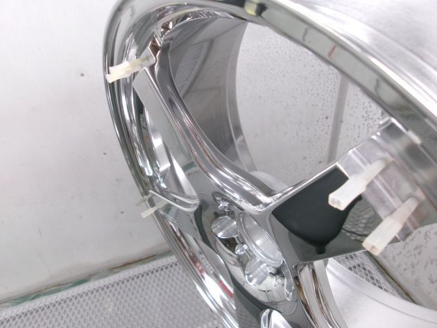 1Pホイール、2P/3Pホイールのディスクのフルポリッシュ化はバレル研磨と言う工法で行いますが、塗装を剥離してそのままバレル研磨に掛けるだけでは綺麗な鏡面にはなりません。