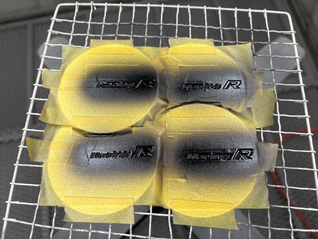センターキャップも同色で塗装をし、彫文字は黒にと言う事で文字は黒にします。