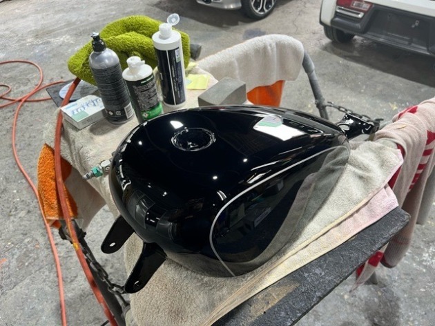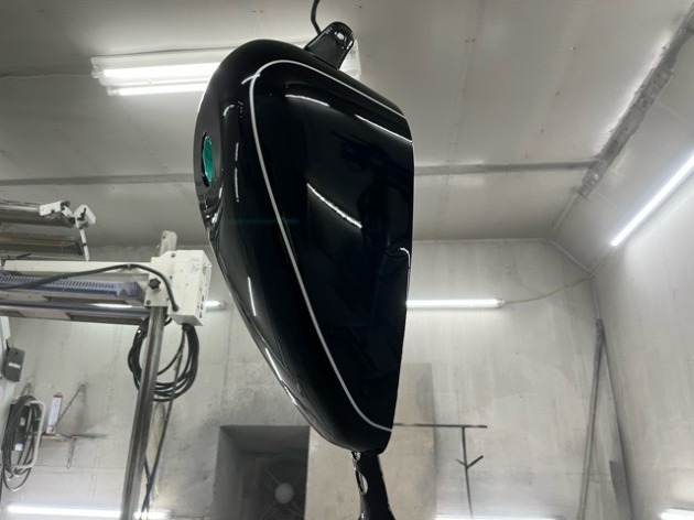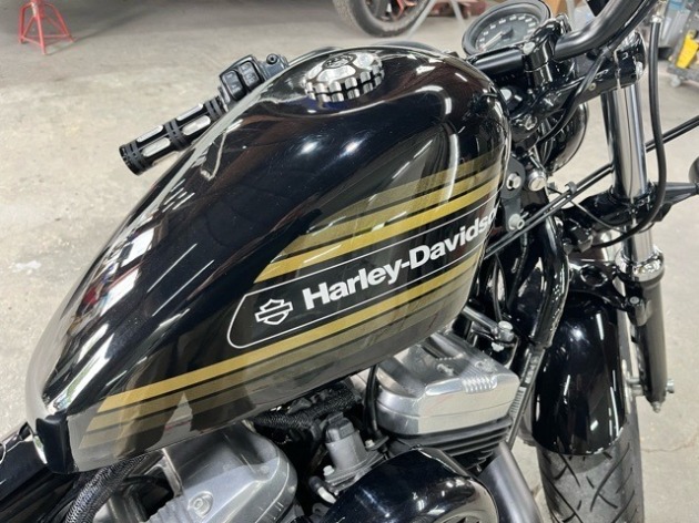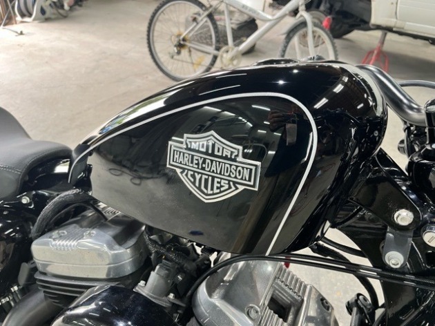 Iさまのハーレーフォーティエイト オリジナルカラーのタンク塗装完了し取付♪