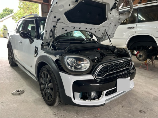 ミニクーパー 自損事故でフロントバンパー修理のご依頼です♪