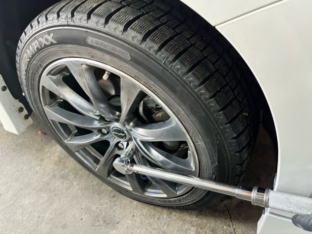 冬の準備でタイヤ交換ゾクゾクとご来店ありがとうございます♪ 2025年11月2日 いつもお世話になっている業者様のプライベートの愛車トヨタ30ヴェルファイア冬の準備でスタッドレスタイヤに交換でご来店頂きました。タイヤは持ち込みの付け替え作業外したついでにサラッと点検問題無さそうなので快適に走ってくれそうですね。珍しい純正ナット仕様のホイールナット。何となく安心感が高い気がします笑取付後はトルクレンチでトルク確認とエアチェックで完了。準備万端でいつ降っても大丈夫ですね。ご依頼ありがとうございました♪
