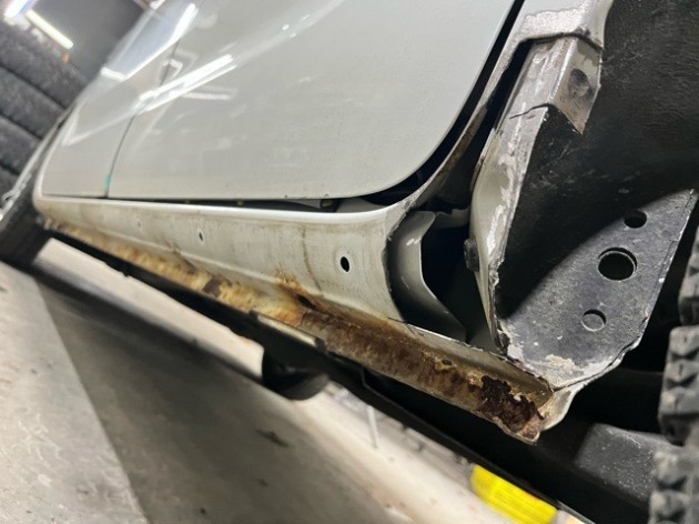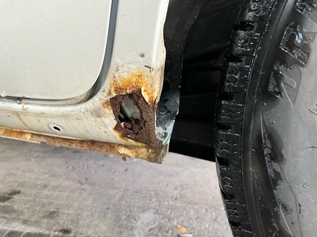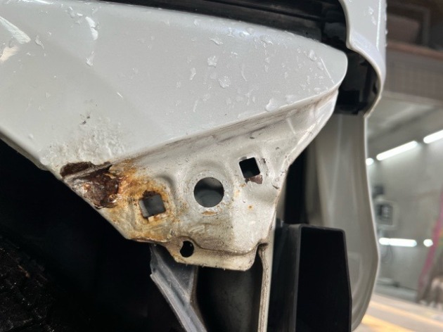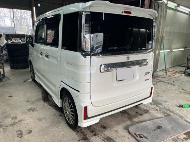 Yさまのスズキスペーシア 定番のリアフェンダーのサビでご入庫です♪