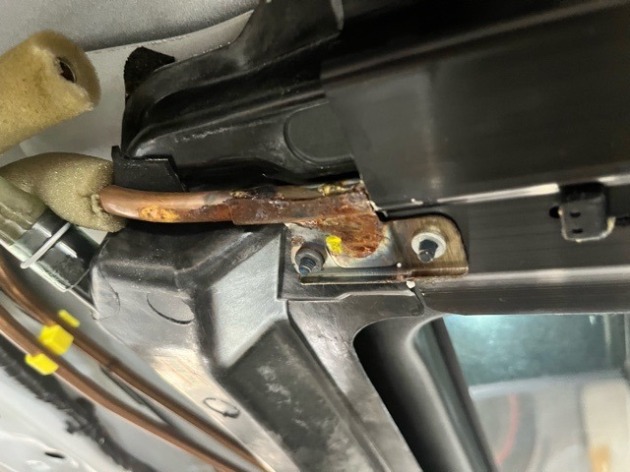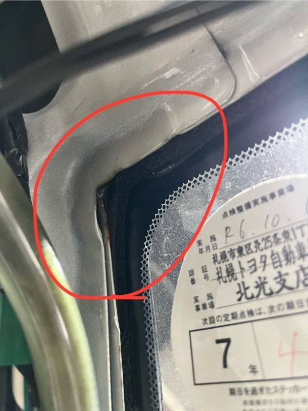 フロントガラスの角にサビの気配。