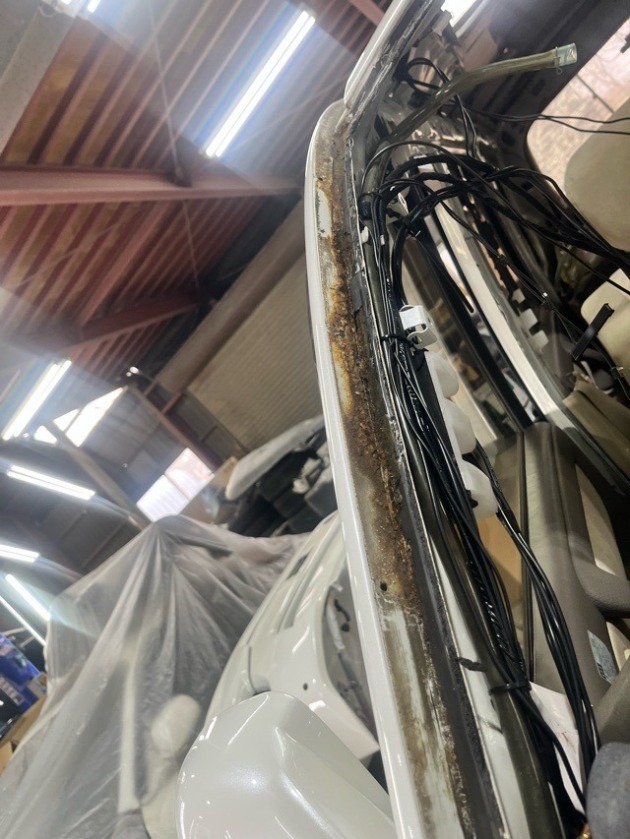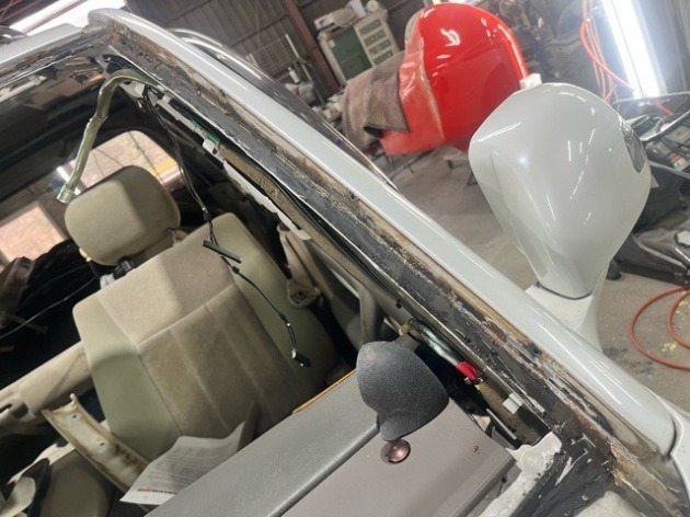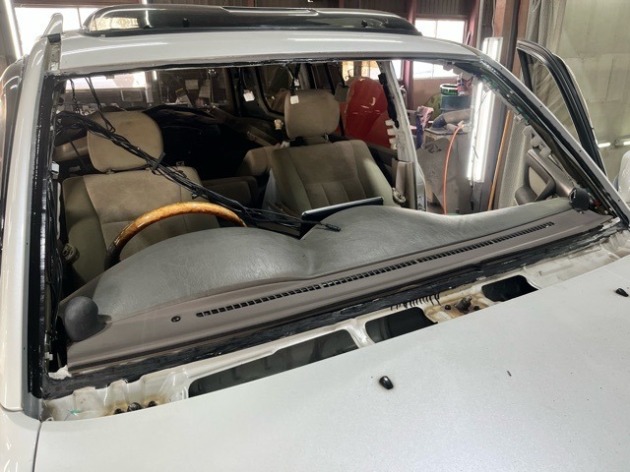 Tさまのトヨタランクル100 フロントガラスの下には大量のサビ!除去してガラス取付♪