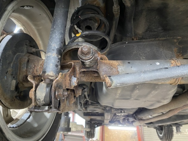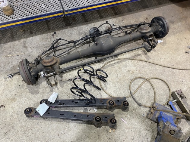 当初はラテラルロッドとスプリング交換の予定でしたが、ホーシングもサビが酷く2次被害が発生しそうなのでリア足回り一式リサイクルパーツで交換する事にしました。