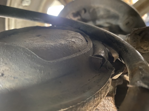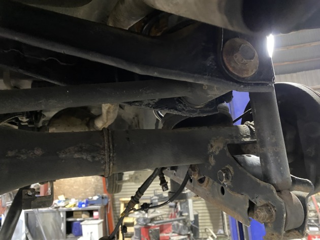 リフトまでの移動でも変な挙動だったので、リフトに上げてみるとラテラルロッドが折れホーシングが左右に振れてました。