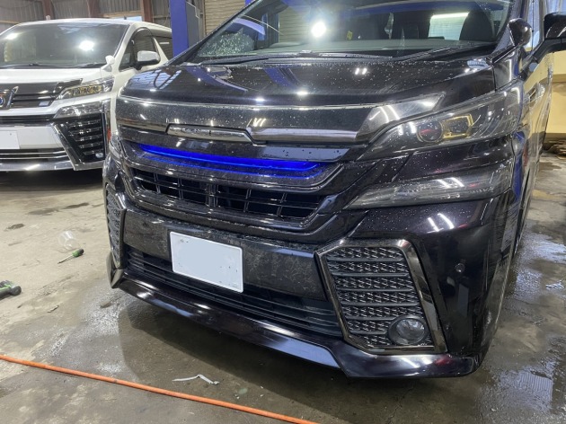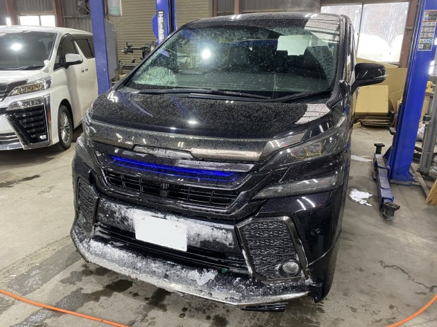 すっかりお待たせしてしまった トヨタヴェルファイアのIさま ようやくご入庫の準備が整い 遠く道東からご来店頂きました。 社外?純正?フロントリップの割れ修理 別の物に交換も考えましたが やはり塗装も含