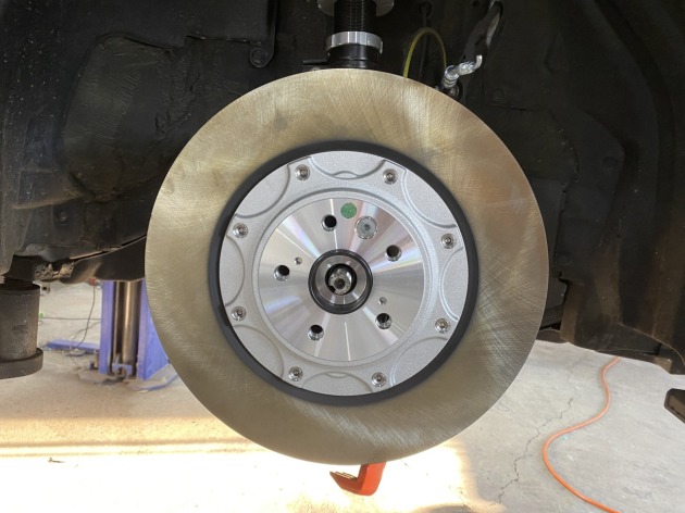 ハブナックルを組み付け、ブレーキディスク・フロントキャリパーを取り付けエア抜きをして作業完了です。