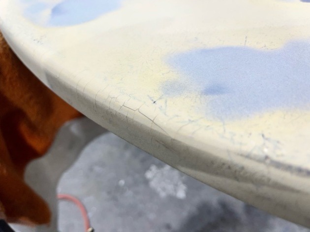 細かなヒビ割れが発生。