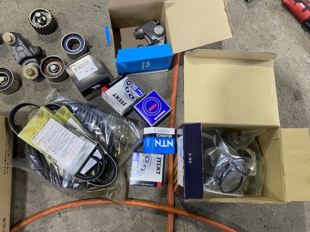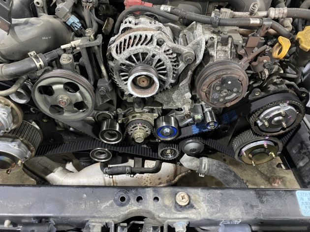 レガシィのタイミングベルト交換(水平対向エンジンは部品点数多)