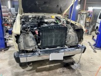 連休前にご連絡頂きご入庫のタイミングを 打ち合わせしやっとお預かりできました。 昨年秋に外した 純正モデリスタの取付と ネットで購入した イカリング仕様のヘッドライトを 取付のご依頼です。 まずはヘッ