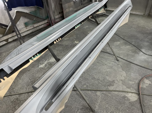 サイドステップとリアバンパーの素地部分をシボ取りしてボディ同色塗装ご依頼を承りました。