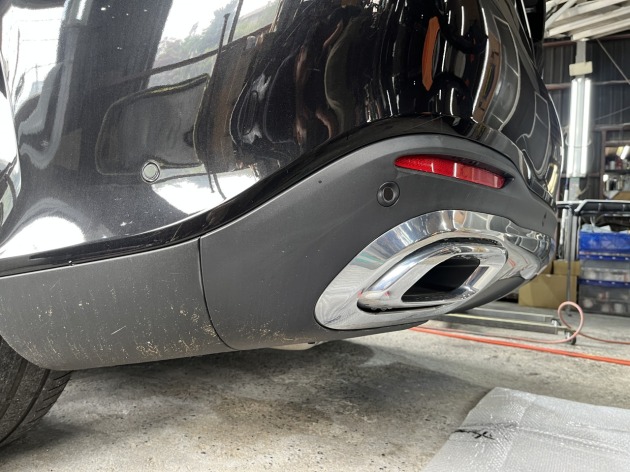 ピッカピカなブラックボディのメルセデスベンツGLSが入庫です。 サイドステップとリアバンパーの素地部分をシボ取りしてボディ同色塗装ご依頼を承りました。 まずは施工するパーツをバラバラに分解して、作業開