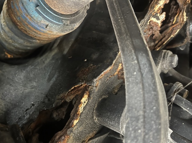 ブレーキパイプ破裂&フレームのサビ腐食進んだランエボVが2次レッカー入庫