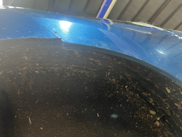 路面のアップダウンでリアタイヤがリアフェンダーと干渉して少しずつリアタイヤが削れてきてしまっているようで、この干渉を無くしたいとの事でリアフェンダーの爪切り加工ご依頼を承りました。