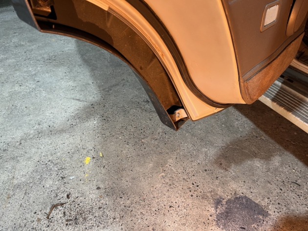 溶接するのでオーバーフェンダーは一応外しておこうかなと作業を進めた所、ボルトがサビで回らなく・・・結果的に折れてしまい、大変な作業スタートとなりました。。。
